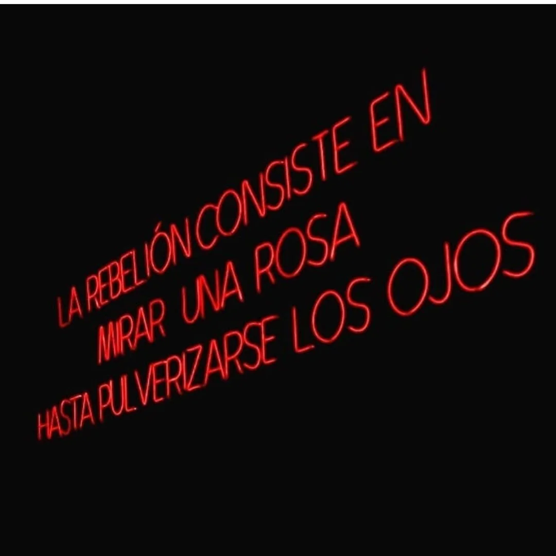 Accustomed to working with messages formalized in neon, Sala here presents a part of a poem by Alejandra Pizarnik, specifically from the Tree of Diana from 1962.