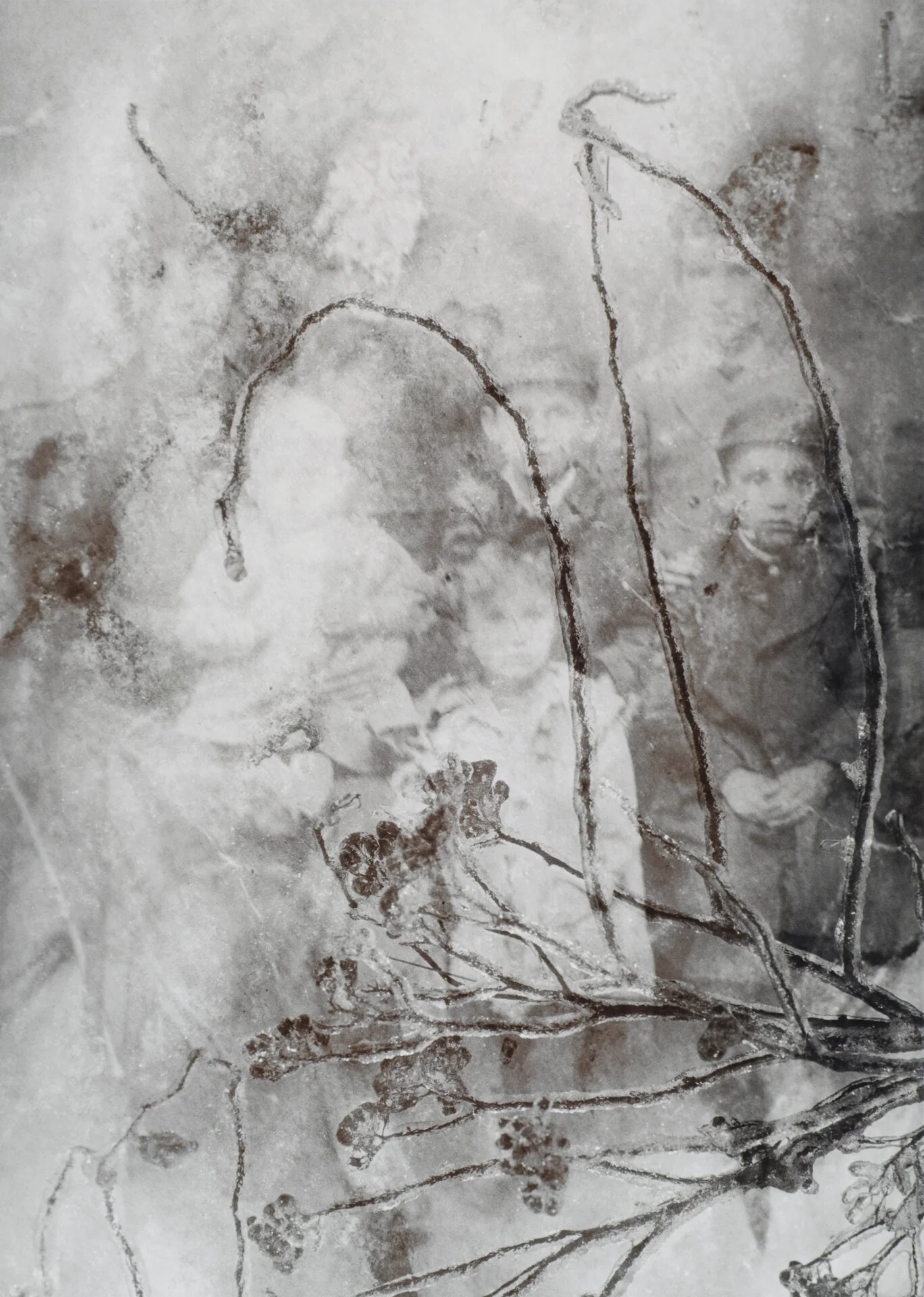 With these photographs, I revisit a 2004 self-portrait (“The Imprint of Memory—Hand”) that I made after having finished three bodies of work in which I explored the history of my family. I play digitally with the negatives and photograms made intuitively in the darkroom and create new images with filters named “Exclusion” and “Difference.” The irony does not escape me, and I smile. Voilà, again, my offering.”